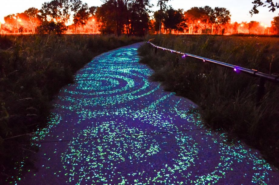 The stunning “Starry Night” path, which allows visitors to cycle above and below the stars, combines glow-in-the-dark stones and LED lights. (Credit: Modacity)